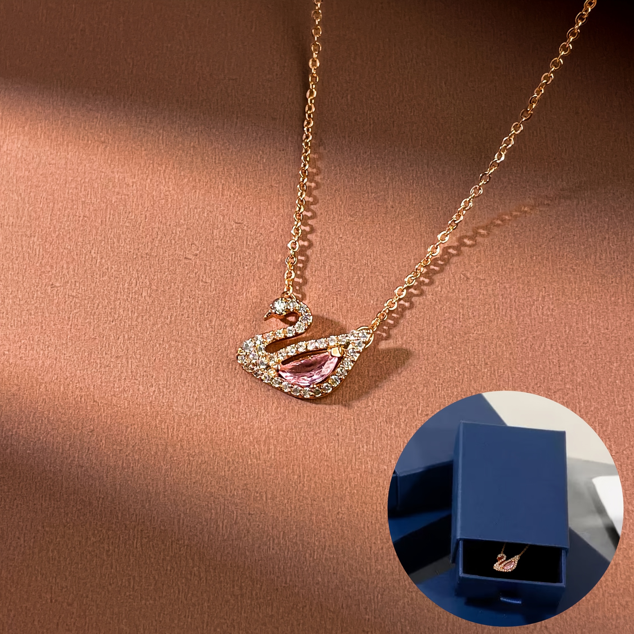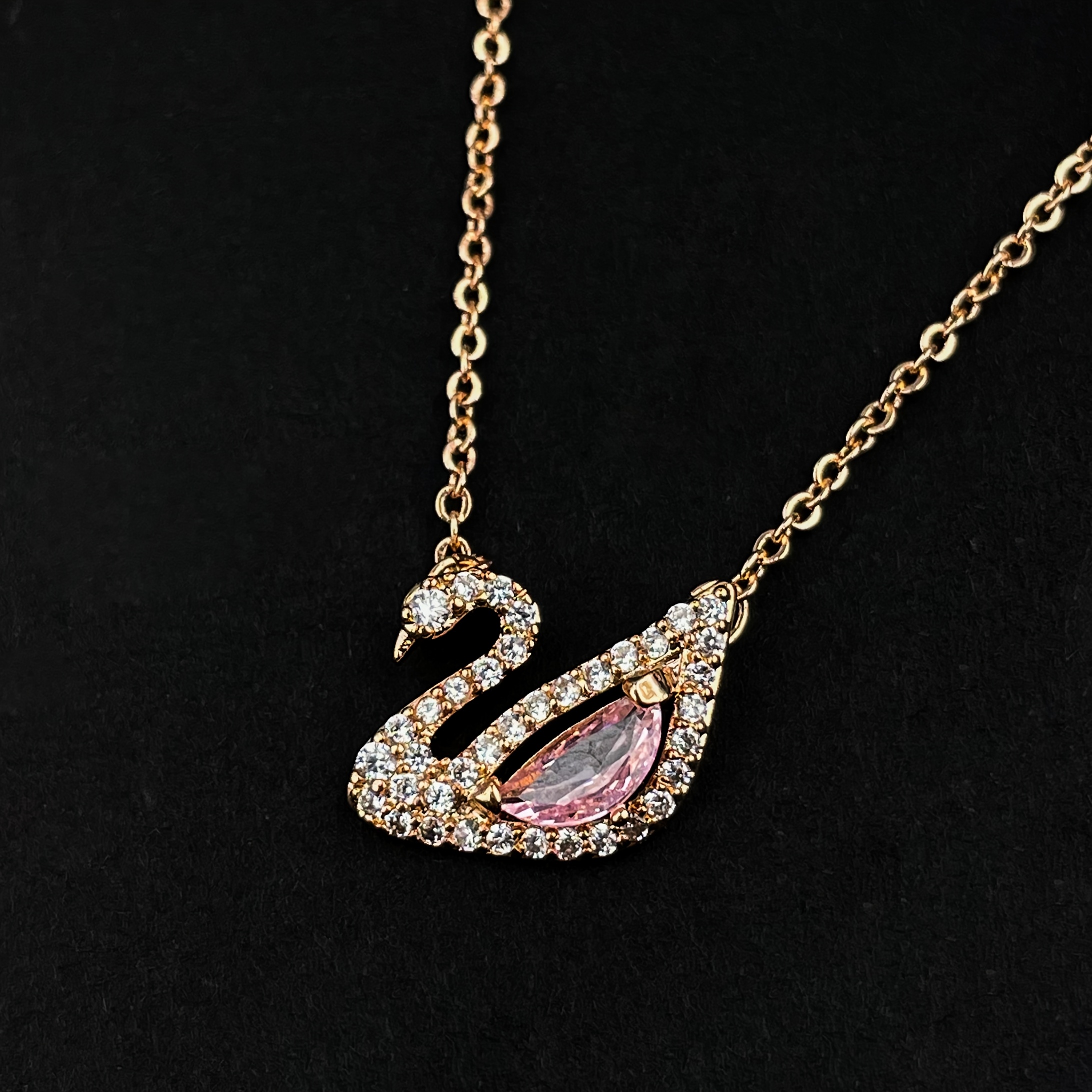 -Collar colgante con forma de cisne de cristal rosa a la moda para mujer, con incrustaciones de diamantes de circón AAA, elegantes, encantadores y de moda.